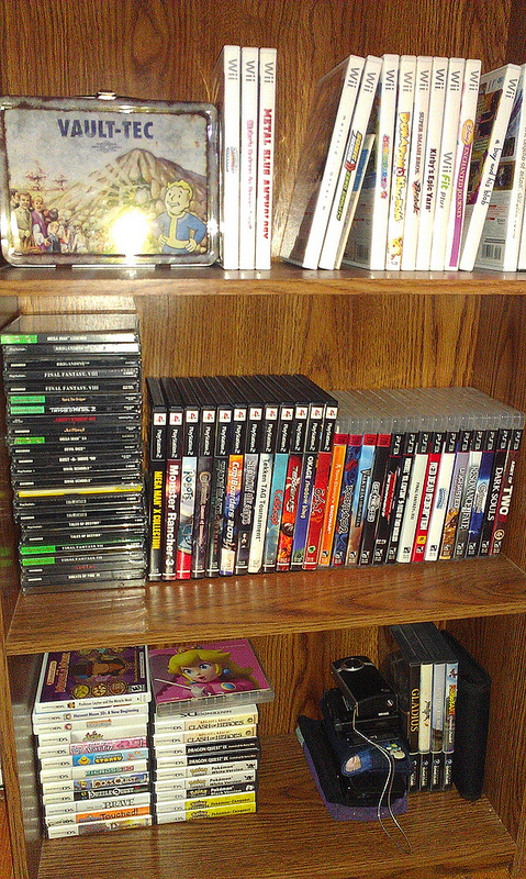 not pictured/hard to make out: secret of mana (snes), tengen gauntlet (nes), Spiritual warfare (nes) Contra (nes), new super mario bros wii, muramasa: the demon blade, donkey kong country returns, little king's story, twilight princess wii, and uh.. one more that i can't remember atm.